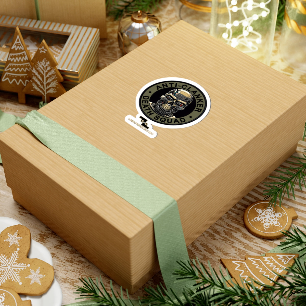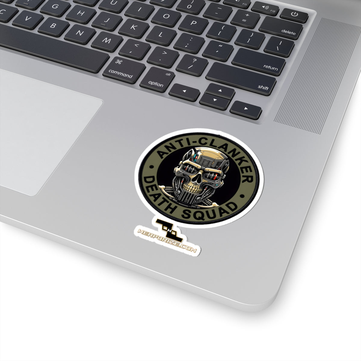 This glossy kiss-cut sticker reads “Anti-Clanker Death Squad” with bold, high-contrast ink that snaps against the surface it’s applied to. It’s got an attitude — a little dark, a little defiant — that sticks to laptops, journals, skate decks, and water-bottle sleeves (indoors). The vinyl’s durable feel and vibrant eco-solvent inks make the artwork pop, while the glossy finish catches light and highlights every line. Application is fast and smooth: peel, place, and press for a bubble-free result. Comes in white or transparent backgrounds and multiple sizes so you can layer it into a collection or let it stand alone as a statement piece. Note: for adult audiences and intended for indoor use only.