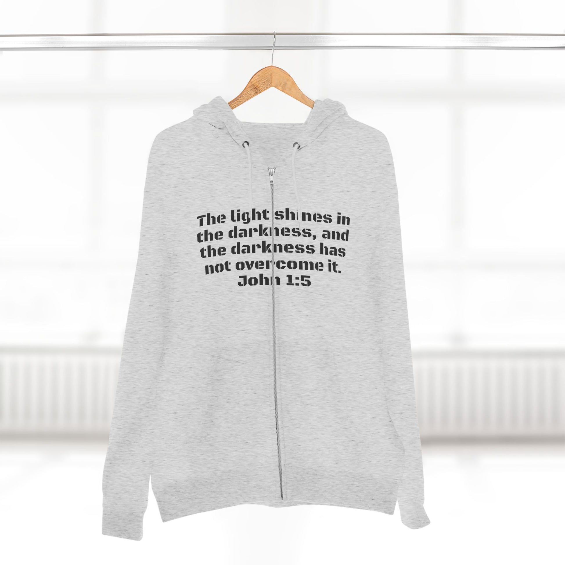 Zip Hoodie - John 1:5 Verse & Bear Arms in the Dark Design